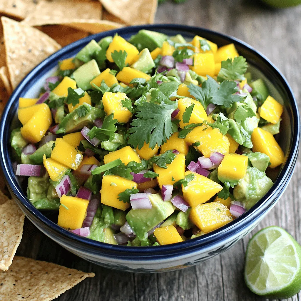 You can make your avocado mango salsa even better by adding fruits or veggies. Consider adding diced bell peppers. They add a nice crunch and a pop of color. You can use any color you like—red, yellow, or green. Each type brings its own flavor. Another great option is to add fresh pineapple. It gives a sweet touch that pairs well with the avocado and mango. Just chop it into small pieces and mix it in.