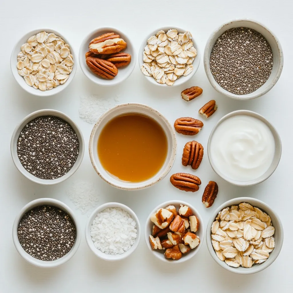 These ingredients form the base of your caramel latte overnight oats. The rolled oats soak up the milk, making them soft. The chia seeds add a nice texture and are healthy. Caramel sauce brings sweetness and flavor. Instant coffee gives that rich coffee taste.