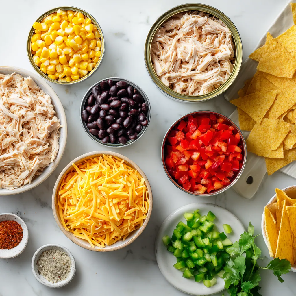 These main ingredients form the heart of the casserole. The chicken or black beans give it protein and flavor. Enchilada sauce adds tang and spice. The corn tortillas act as layers, making it hearty. Cheese binds everything together, ensuring every bite is cheesy and delicious.