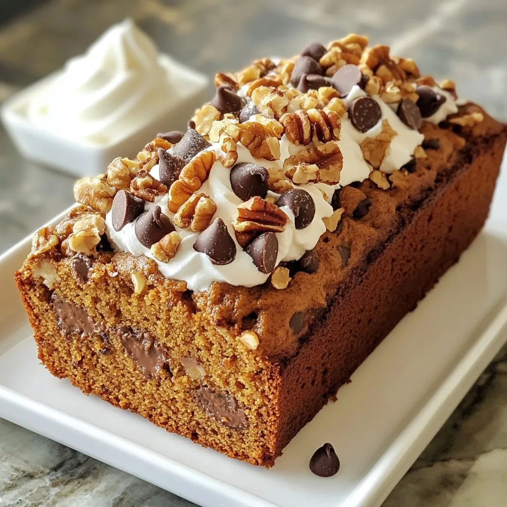 A deliciously moist bread infused with pumpkin spice and chocolate chips, perfect for fall.