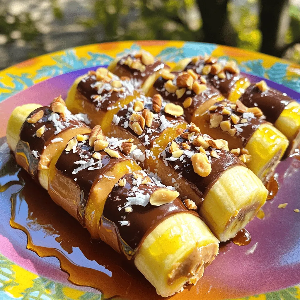 To make Chocolate Peanut Butter Banana Sushi, gather these tasty ingredients. Start with ripe bananas. They should be soft but not brown. The creamy peanut butter brings a rich flavor. Dark chocolate spread adds sweetness and depth.