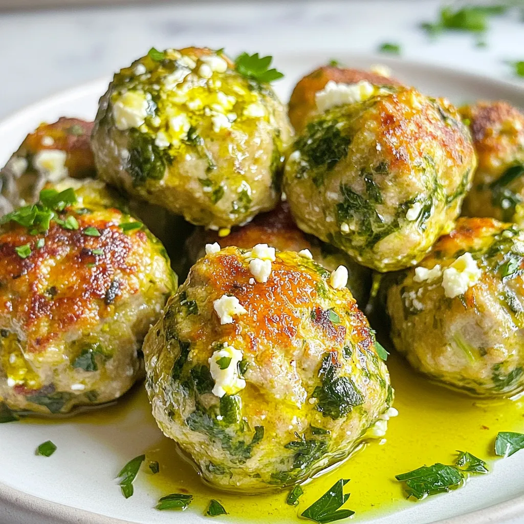 - 1 lb ground turkey - 2 cups fresh spinach, finely chopped - 1/2 cup crumbled feta cheese - 1/2 cup breadcrumbs - 1 tablespoon olive oil - 3 cloves garlic, minced - 1/4 cup onion, finely chopped - 1 teaspoon dried oregano - 1 teaspoon salt - 1/2 teaspoon black pepper - 1/4 teaspoon red pepper flakes (optional) - Ground turkey alternatives: You can use ground chicken or beef for a different taste. - Gluten-free breadcrumbs: Swap with crushed gluten-free crackers or almond flour. - Dairy-free feta options: Try using tofu or cashew cheese for a dairy-free twist. These ingredients will help you create meatballs that burst with flavor. The spinach adds a fresh touch, and feta gives a nice tang. Don't forget that the spices really bring everything together. If you want to mix it up, try the substitutions listed. They can make this dish fit different diets while keeping it tasty. {{ingredient_image_2}} First, preheat your oven to 400°F (200°C). This step is key for a nice bake. Line a baking sheet with parchment paper for easy cleanup. It saves time and effort later. Next, grab a large mixing bowl. Here, you will blend the ground turkey, finely chopped spinach, crumbled feta cheese, and breadcrumbs. Add one large egg, three minced garlic cloves, and a quarter cup of finely chopped onion. Now, drizzle in one tablespoon of olive oil. Sprinkle one teaspoon of dried oregano, along with one teaspoon of salt and half a teaspoon of black pepper. If you like a little kick, add a quarter teaspoon of red pepper flakes. Mix all these ingredients gently with your hands. Be careful not to overmix. You want tender meatballs, not tough ones. Time to form the meatballs! Take a small amount of the mixture and shape it into a ball about one inch wide. Place the meatballs on the baking sheet. Make sure to space them evenly. This helps them cook well. If they are too close, they might stick together. Now, it's time to bake. Place the meatballs in the oven for 20 to 25 minutes. Keep an eye on them. They need to turn golden brown and reach an internal temperature of 165°F (75°C). To check for doneness, use a meat thermometer. Insert it into the center of a meatball. If it reads 165°F, they are ready! After baking, remove the meatballs from the oven. Let them cool for a few minutes before serving. Enjoy your delicious Spinach Feta Turkey Meatballs! To maximize flavor absorption, chop the spinach finely. This helps it blend well with the turkey. Use fresh ingredients whenever possible. Fresh garlic and onion add depth to your meatballs. Don’t forget to let the mixture rest for a few minutes. This allows the breadcrumbs to soak up moisture and flavors. Mixing ingredients requires a gentle touch. Use your hands to combine, but do not overmix. Overmixing can make the meatballs tough. Just mix until everything is combined. Form the meatballs gently to keep them light and airy. For garnishing, fresh herbs like parsley or basil work well. Sprinkle them over the meatballs right before serving. This adds color and freshness to your dish. Arrange the meatballs on a decorative platter for a nice touch. Serve the meatballs with a warm bowl of marinara sauce. This adds flavor and moisture. You can also place them over whole grain spaghetti. This makes for a hearty meal that is sure to please. If your meatballs fall apart, try adding more breadcrumbs. This helps bind the mixture better. You can also chill the mixture for 30 minutes before forming the balls. This makes them easier to handle. Adjusting seasoning is easy. Taste the mixture before baking. If it needs more salt or spices, add them. Remember, flavors can change after cooking, so don't be shy. Make it your own by tweaking the seasonings to suit your taste. Pro Tips Use Fresh Spinach: Fresh spinach adds more flavor and nutrients compared to frozen. Make sure to chop it finely for better incorporation. Keep Meatballs Moist: Adding a bit of olive oil helps keep the meatballs moist. Avoid overmixing to prevent tough texture. Check for Doneness: Use a meat thermometer to ensure your turkey meatballs reach an internal temperature of 165°F (75°C) for safe eating. Flavor Variations: Experiment with different herbs and spices, such as basil or thyme, to personalize your meatballs to your taste. {{image_4}} You can make these meatballs even more fun by adding extra veggies. Try mixing in some finely chopped bell peppers or zucchini. These add color and nutrition. You can also swap the feta cheese. Use mozzarella or goat cheese for a different taste. Each cheese gives a unique twist and flavor. To change the taste, think about Mediterranean herbs. Adding oregano, thyme, or basil can create a fresh profile. You might want to spice things up too. Add extra red pepper flakes or fresh jalapeños for heat. A spicy version can really wake up your taste buds. You have choices for cooking these meatballs. You can pan-fry them for a crispy outside. Just heat some olive oil in a skillet and cook them until brown. Baking is another great option. It’s simple and cuts down on extra fat. You can also use a slow cooker. Just combine the meatballs with sauce and let them cook all day. Each method gives a different texture and taste. To keep your meatballs fresh, store any leftovers in the fridge. Place them in an airtight container. This helps seal in flavor and moisture. If you have a lot, layer them with parchment paper. This prevents sticking. You can enjoy your meatballs for 3 to 4 days. To save meatballs for later, freezing is a great option. Start by letting them cool completely. Then, place them on a baking sheet in a single layer. Freeze for about an hour until firm. Once set, transfer them to a freezer bag. Remove as much air as possible. You can freeze them for up to 3 months. When ready to eat, thaw them in the fridge overnight. Reheat in the oven or microwave until hot. Cooked meatballs last about 3 to 4 days in the fridge. Always check for signs of spoilage before eating. 