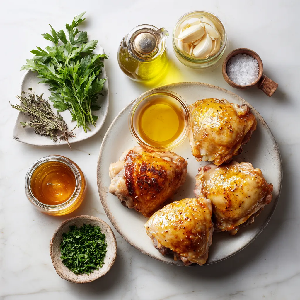 To make honey mustard chicken thighs, gather these key ingredients. The chicken thighs are perfect for this dish. Their skin locks in moisture and adds great flavor. Honey and Dijon mustard create a sweet and tangy sauce. Apple cider vinegar adds brightness, while garlic gives depth. Seasonings like thyme and paprika enhance the taste. Don’t forget salt and pepper to balance the flavors. Olive oil helps in the cooking process and ensures a nice sear. Finally, fresh parsley brings a pop of color and freshness to your plate.