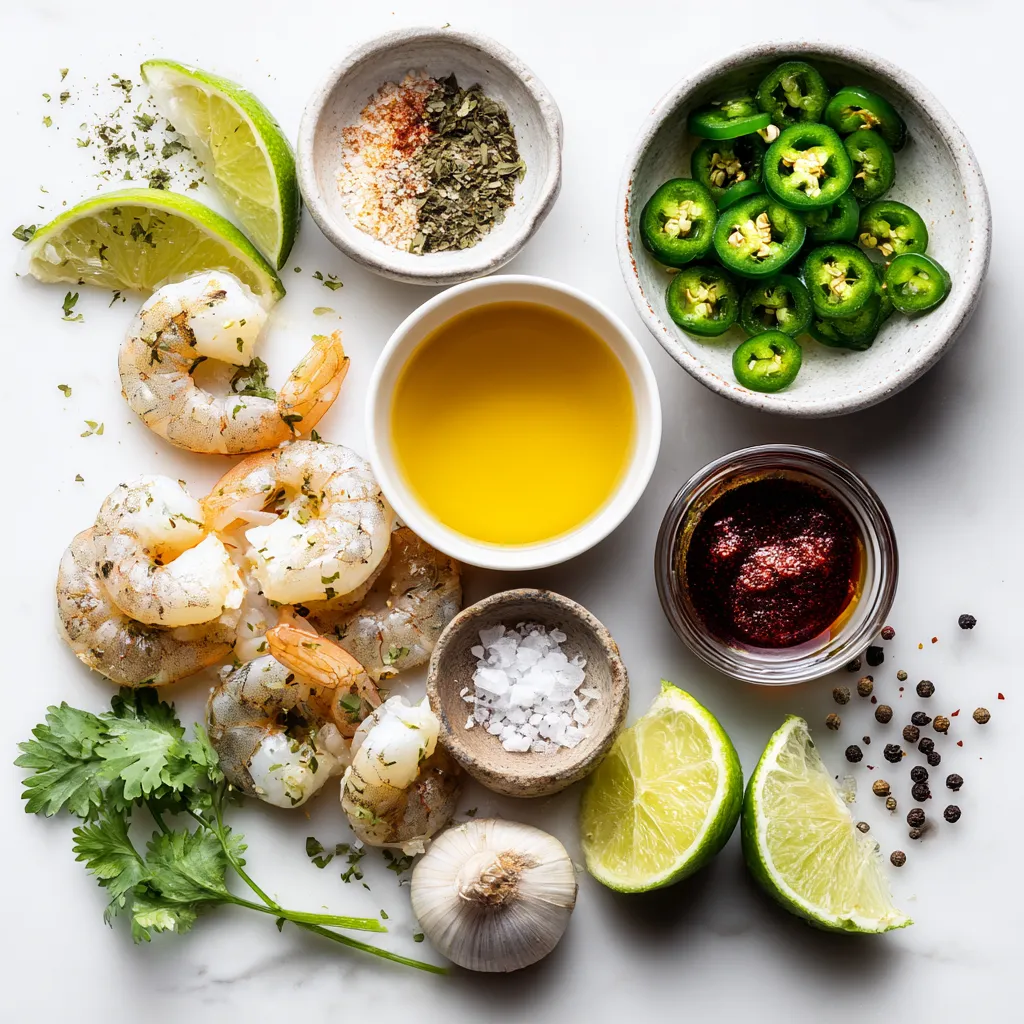 A flavorful and spicy shrimp dish marinated in jalapeños, lime, and garlic, perfect for grilling.