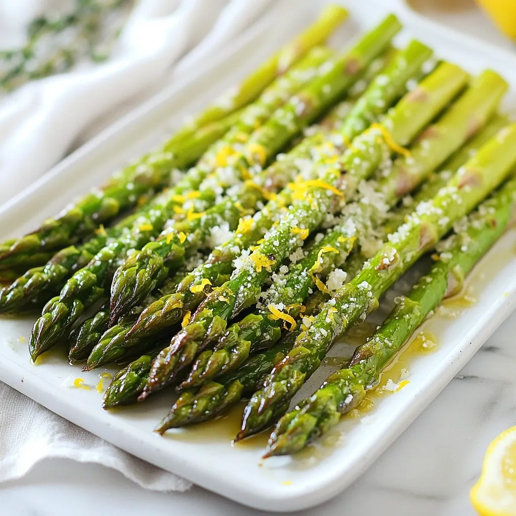 A flavorful side dish featuring roasted asparagus tossed in a zesty lemon garlic mixture.