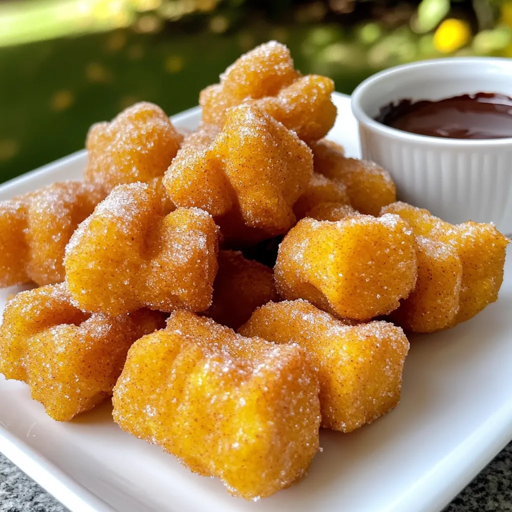3. Plating Suggestions and Serving Options: Arrange the churro bites neatly on a serving plate. You can serve them warm. For extra fun, add a small bowl of chocolate sauce for dipping. Enjoy your delightful fall treat!