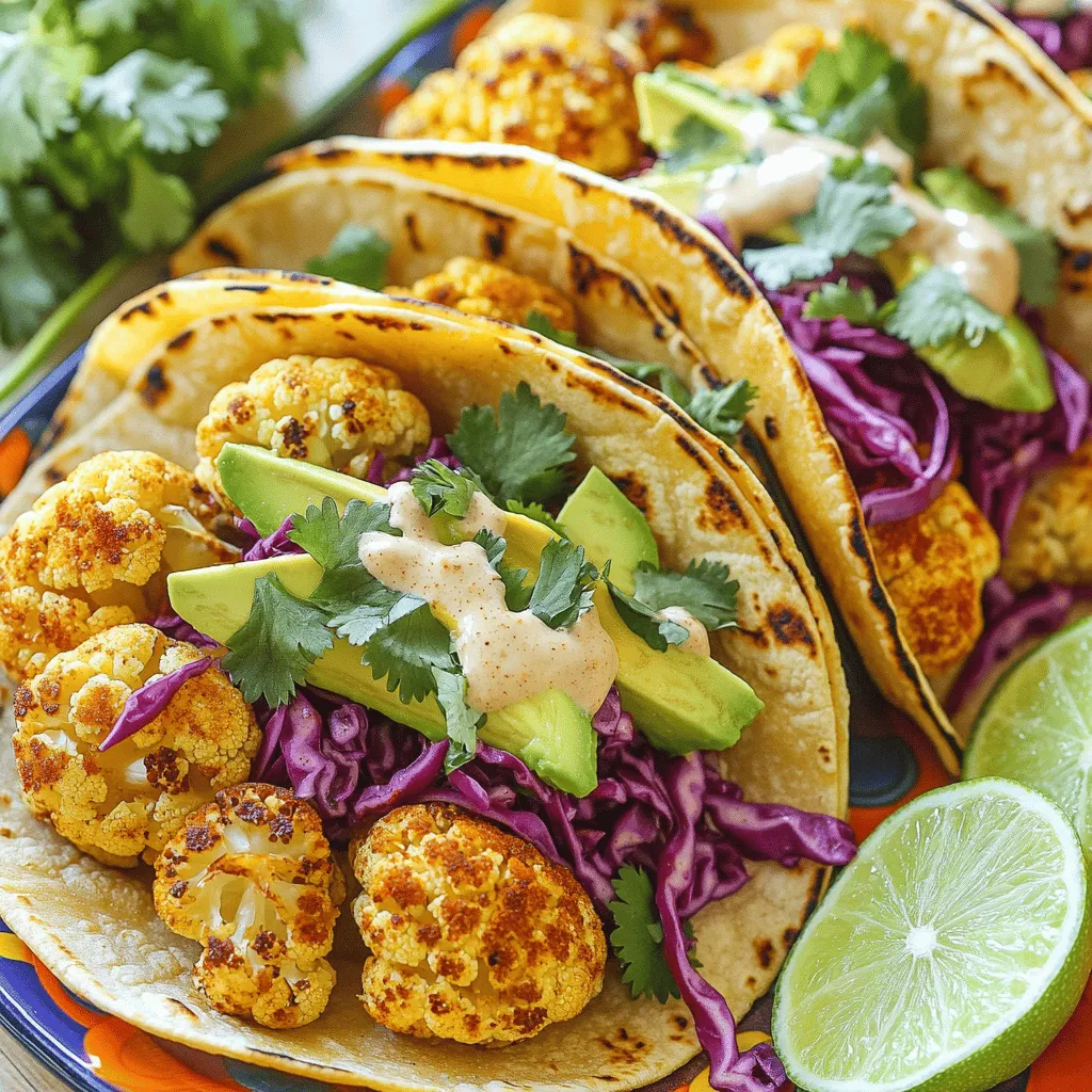 To make these tacos, I start with a fresh head of cauliflower. Cauliflower is hearty and takes on flavors well. Olive oil helps the spices stick to the florets. I use smoked paprika for a rich taste and color. Ground cumin adds warmth, while garlic powder gives a savory kick. Season with sea salt and black pepper to enhance the flavors.