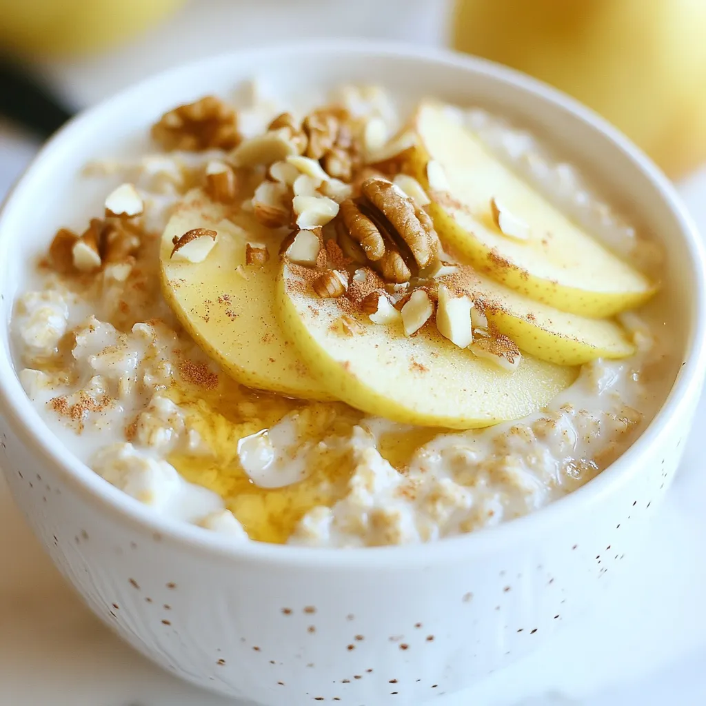 A delicious and healthy breakfast option made with rolled oats, almond milk, and fresh apples, perfect for meal prep.