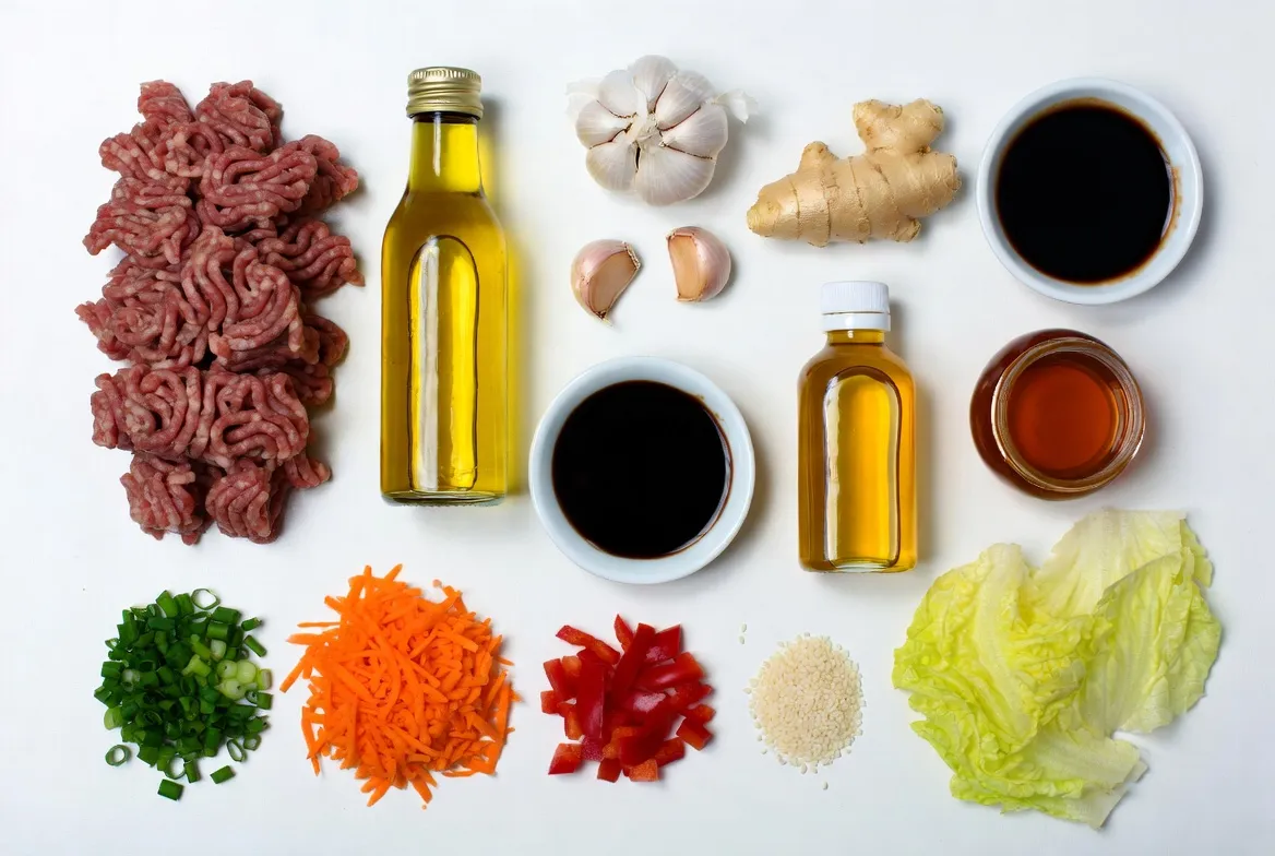 Main Ingredients for Sesame Ginger Beef Lettuce Wraps